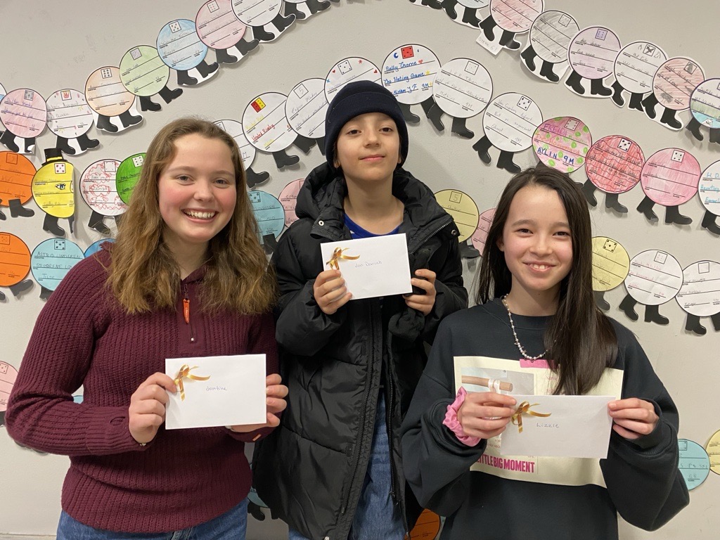 HURRA!!! Fra venstre: Josefine (9c), Jan Dariush (3a) og Lizzie (6a) vant lesekonkurransen, på henholdsvis 8.-10., 1.-4. og 5.-7. trinn.